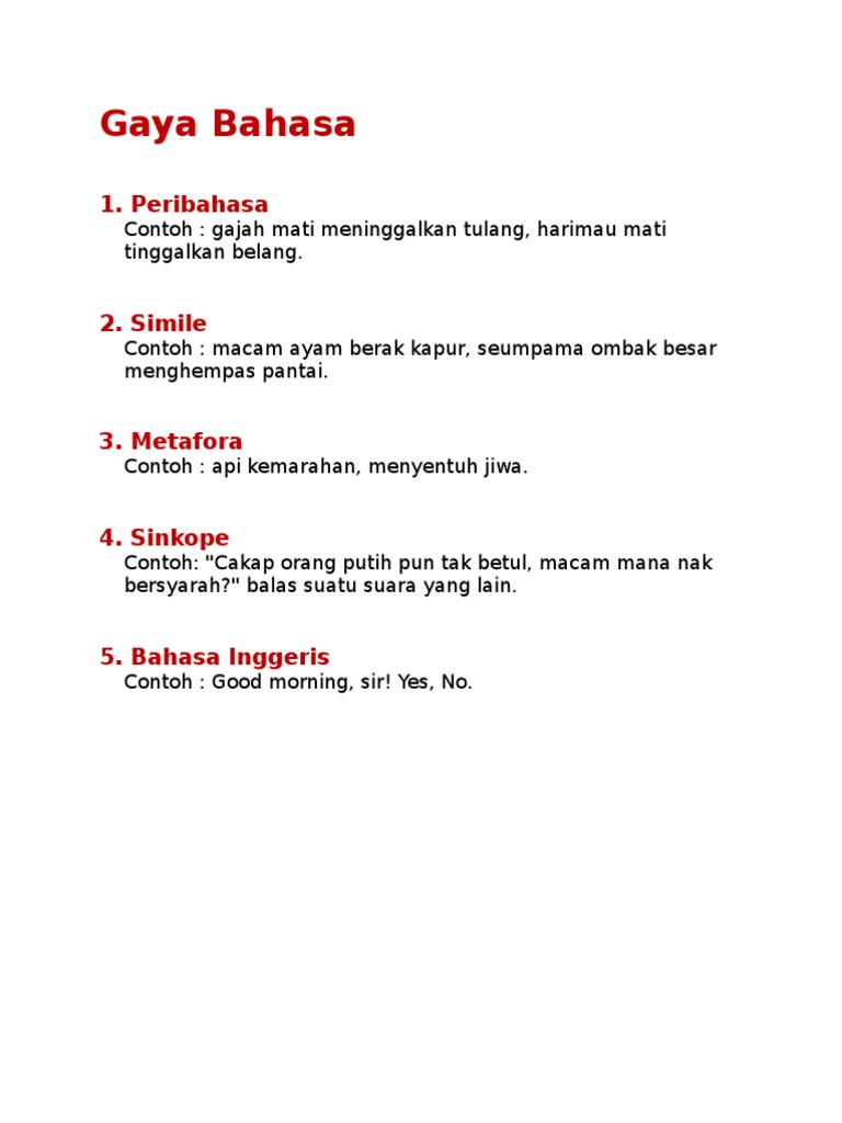 . Berikut ini adalah beberapa contoh majas simile. Ini kerana perbandingan itu menggunakan kata-kata tertentu iaitu seperti umpama bak bagai ibarat dan sebagainya. Gaya bahasa banyak kita temui baik di kehidupan sehari-hari maupun novel.
